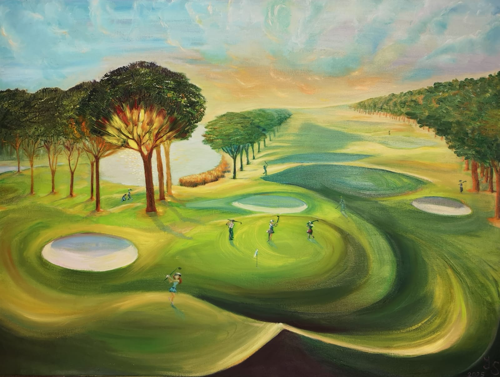 The painting “Endless” is a tribute to the infinite beauty and harmony of the golf landscape. The artist sought to capture the serene flow of space - where the play of light and shadow, the gentle rhythm of trees, and the movement of players merge into a sense of timelessness.