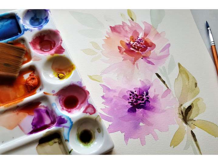 Iepazīsieties ar akvareļa materiāliem un tehnikas noslēpumiem un pabeigsiet vienu darbu.