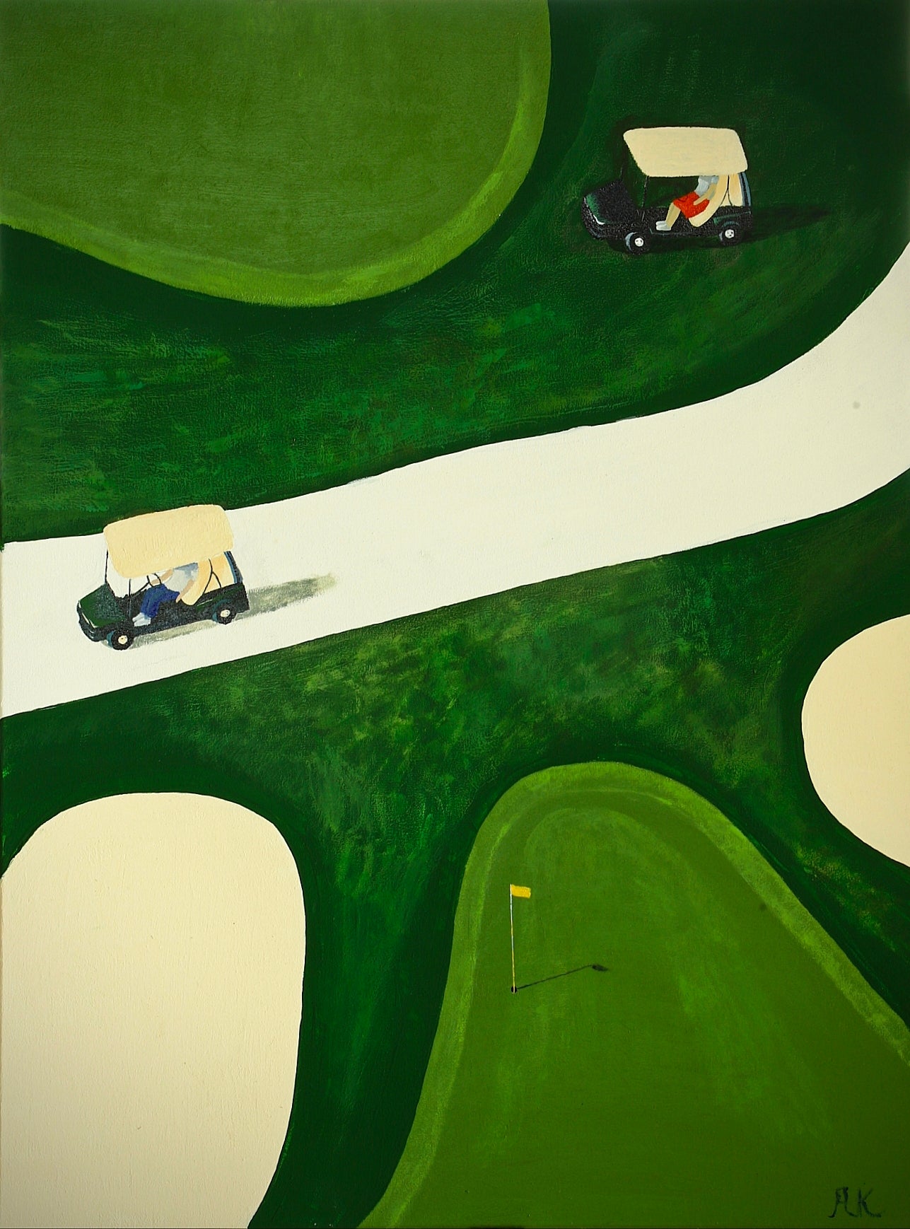 Golfa laukumā, tāpat kā dzīvē, katrs gājiens prasa uzmanību un precizitāti. Baltā ceļš simbolizē dzīves ceļu, kur izvēle nosaka rezultātu. Darbs ir par mieru, stratēģiju un iekšējo koncentrēšanos pirms rīcības.